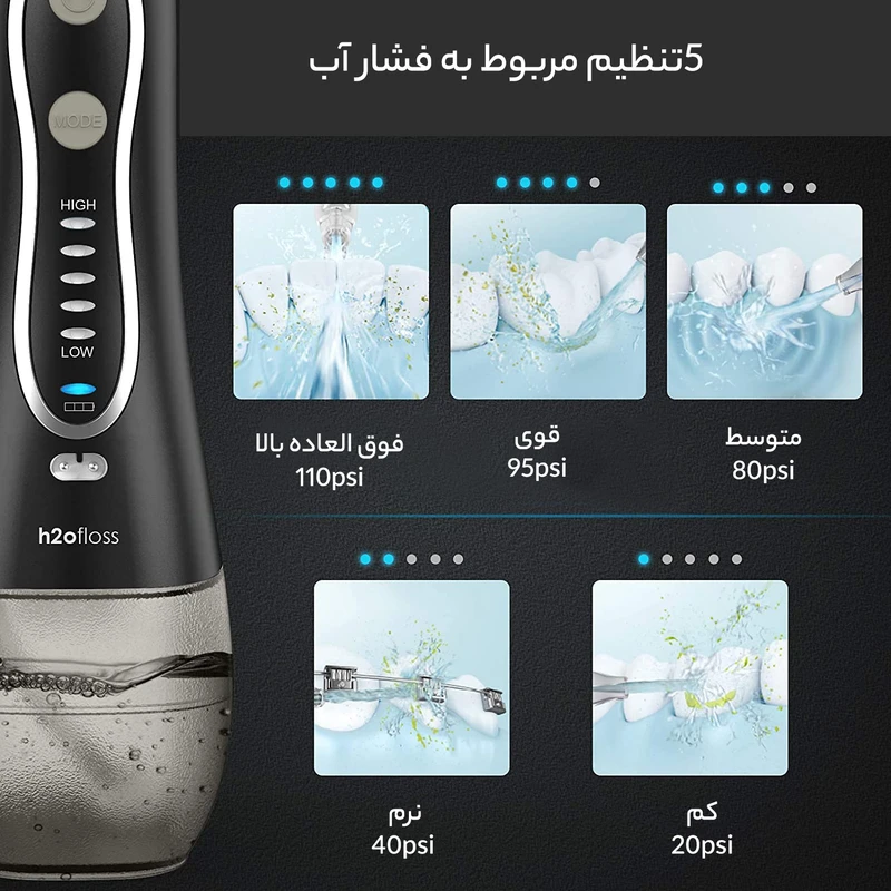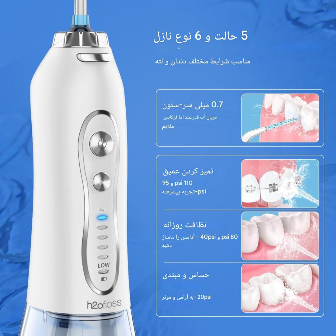 واترجت دندانی H2OFLOSS مدل HF-6 دستگاهی مدرن برای حفظ بهداشت دهان و دندان است که با استفاده از تکنولوژی فشار آب، جرم، باکتری و باقیمانده مواد غذایی را حتی از عمیقترین نواحی بین دندانها و زیر لثه پاکسازی میکند.