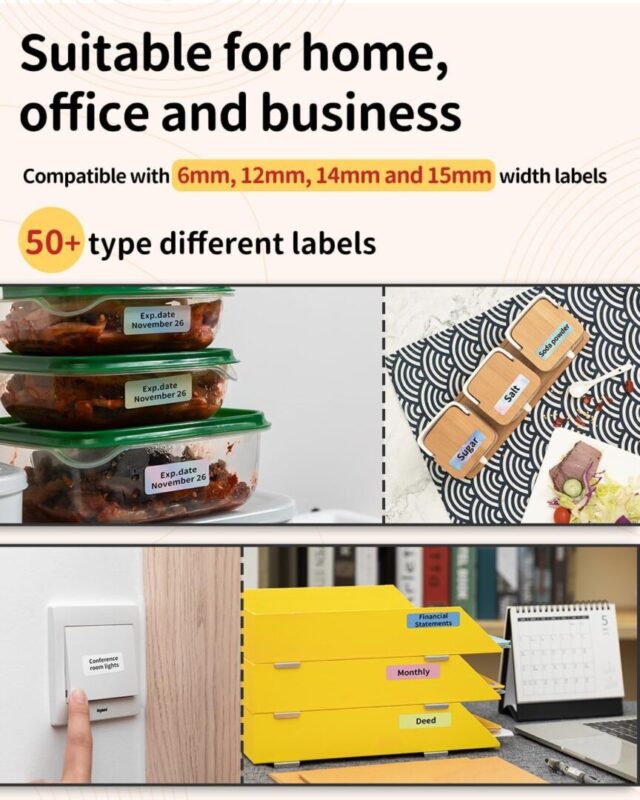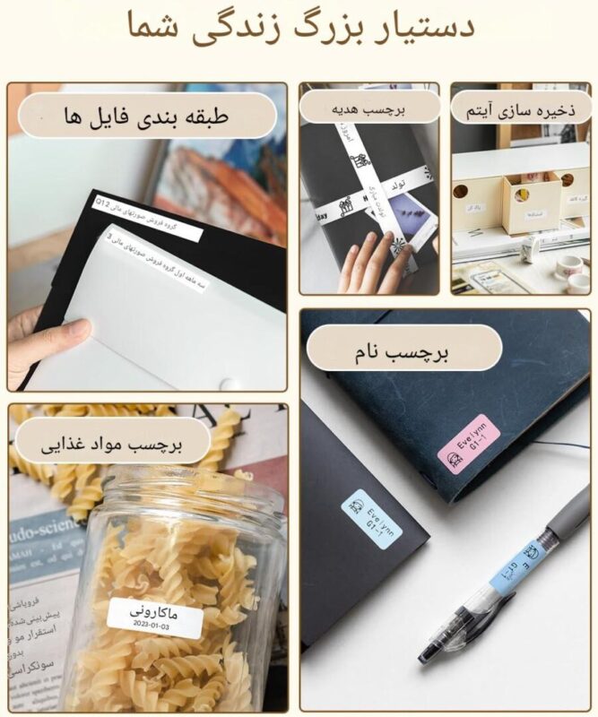 کاربردها: از این دستگاه میتوانید در موارد مختلفی مثل برچسبگذاری در خانه، دفتر کار، آشپزخانه، باغ و حتی برای دستهبندی محصولات فروشگاهی استفاده کنید.