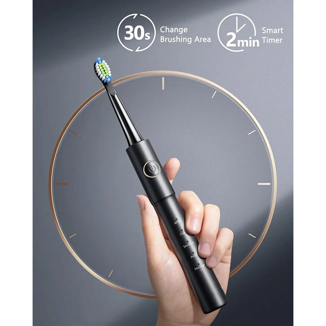 🔸 مسواک برقی Fairywill E11 با وزن سبک (تنها 55 گرم) و موتور صوتی قدرتمند، با ۴۰,۰۰۰ لرزش در دقیقه، به راحتی پلاکها و باکتریهای دهان را از بین میبرد و دندانهایی سفیدتر و سالمتر برایتان به ارمغان میآورد. این مسواک دارای ۵ حالت مسواکزنی (تمیزکننده عمیق، ملایم، سفیدکننده، مراقبت از لثه و پولیش) است تا متناسب با نیازهای مختلف دهان و دندان قابل تنظیم باشد.