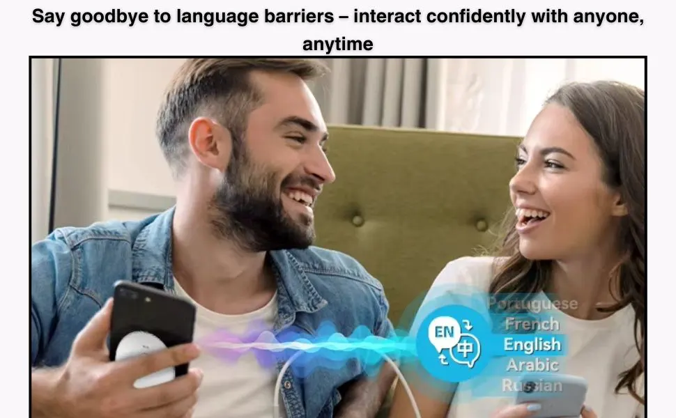 برای ترجمه چهره به چهره، دستگاه را به پشت گوشی بچسبانید، دکمه میکروفون را فشار دهید و صحبت کنید.