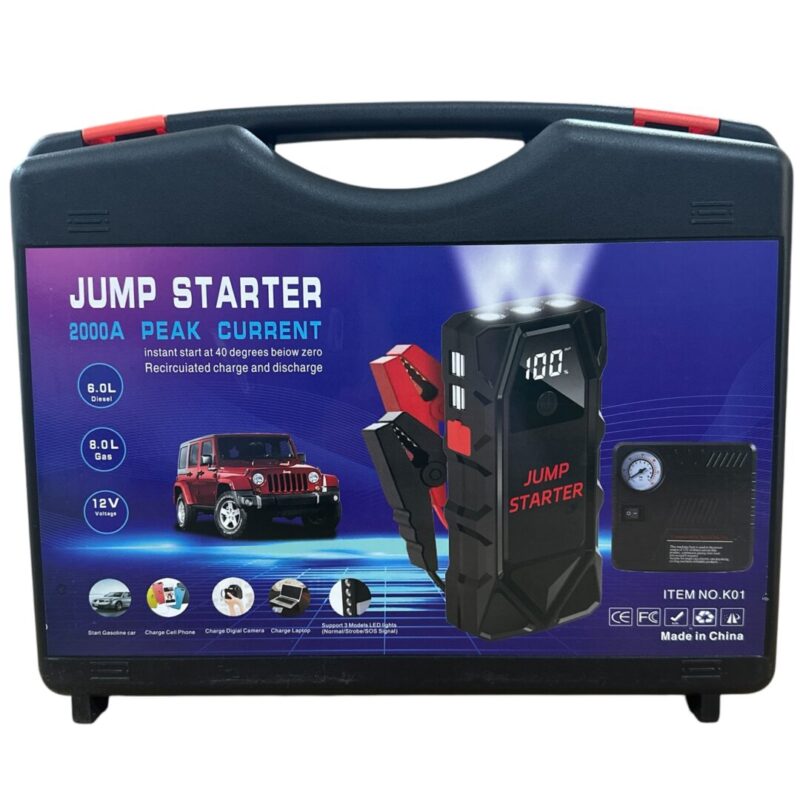 جامپ استارتر و پاوربانک خودرو مدل K01 با ظرفیت ۱۸۰۰۰ میلیآمپر | سبک، قدرتمند و چندکاره