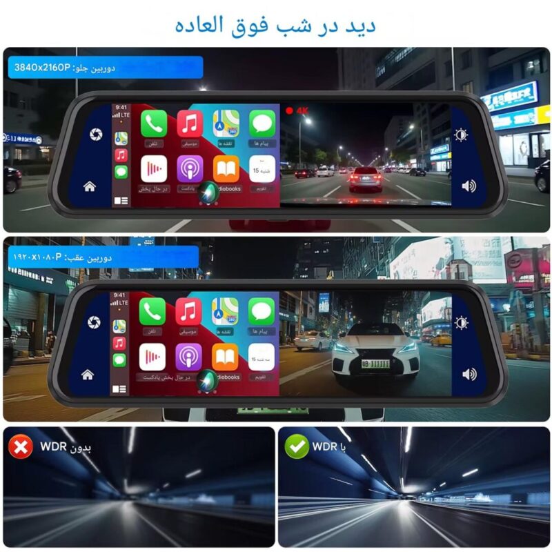 CarPlay، Android Auto، G-Sensor، Motion Detection، ضبط صدا، WDR، Full Color، دید در شب |