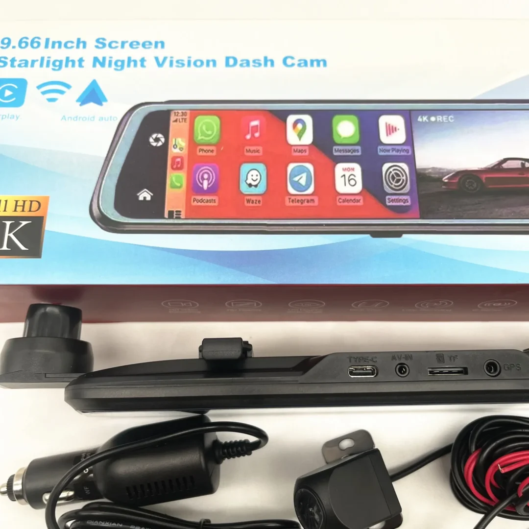 آینه دوربین دار خودرو 9.66 اینچ با نمایشگر لمسی 4K، پشتیبانی از CarPlay و Android Auto