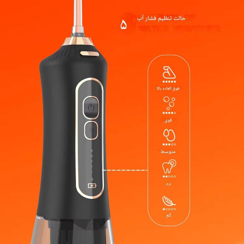 🔹 واترجت F6 با فشار قابل تنظیم و ۵ حالت کاری، ۱۲۰۰ پالس در دقیقه را با طراحی ضدآب IPX7 ارائه میدهد و جرمهای پنهان را بهراحتی پاک میکند.
