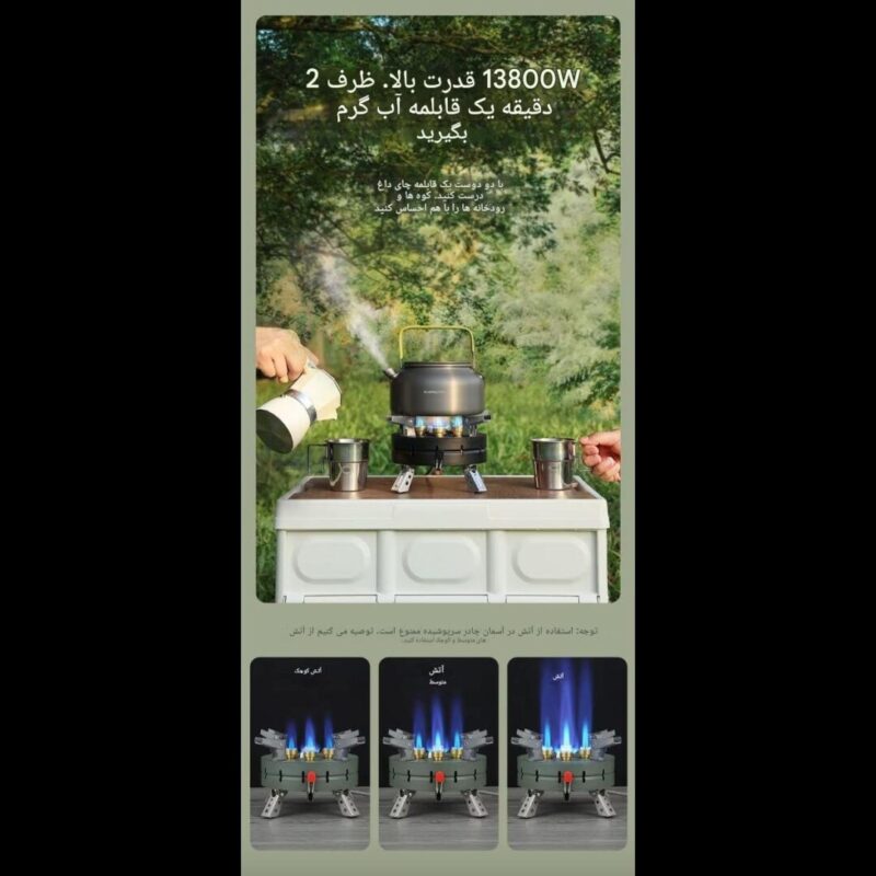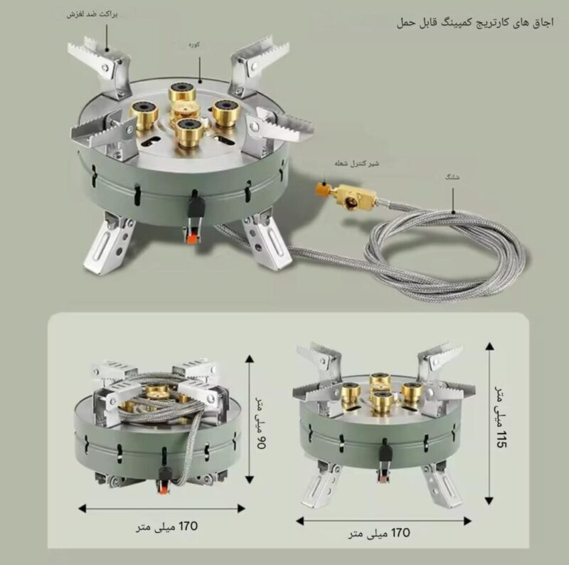 کاربردهای اجاق گاز کمپینگ: این اجاق گاز مناسب برای کمپینگ، پیکنیک و سفرهای خارج از خانه است و با طراحی مقاوم، قدرت بالا، و قابلیت حمل آسان، به یکی از ابزارهای ضروری برای فعالیتهای بیرونی تبدیل میشود.