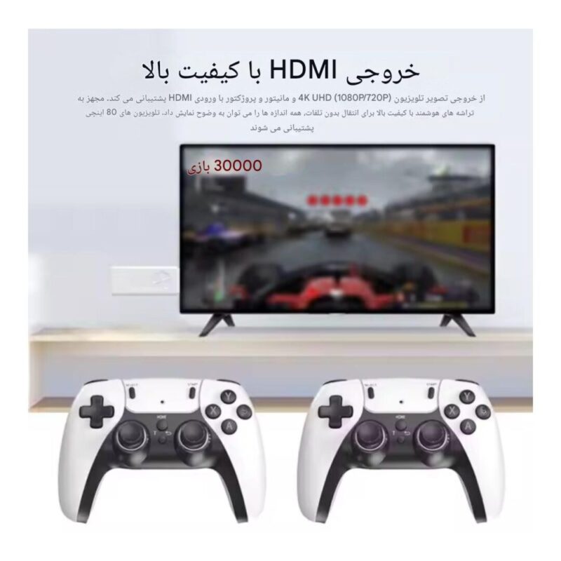 کنسول بازی گیم استیک مدل Game Stick SEM F10 با 30 هزار بازی و ۲ دسته بیسیم، حافظه ۶۴ گیگابایت