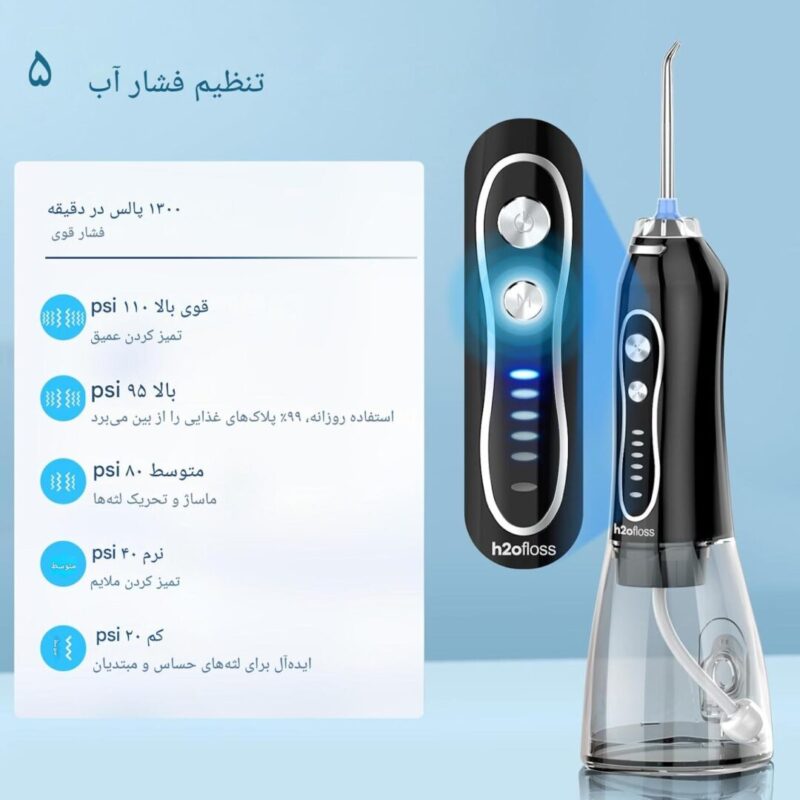 با دستگاه شستوشوی دهان و دندان H2OFLOSS مدل HF-6 نسخه 2025، بهداشت دهان را به مرحلهای بالاتر ببرید. این واترجت حرفهای با استفاده از پاشش آب با فشار متغیر، باقیمانده غذا و جرمها را از بین دندانها و اعماق لثهها خارج کرده و محیطی کاملاً تمیز، سالم و عاری از باکتری برای شما فراهم میکند.