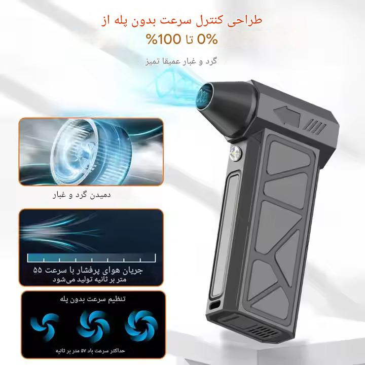 بیسیم بودن و پشتیبانی از پورت شارژ تایپ C به شما امکان استفاده راحت در هر محیطی را میدهد، بدون محدودیت سیم یا نیاز به پریز برق. مناسب برای تمیزکاری لپتاپ، کیبورد، فیلتر کولر، دریچههای خودرو، ابزارآلات و حتی فضای باز.