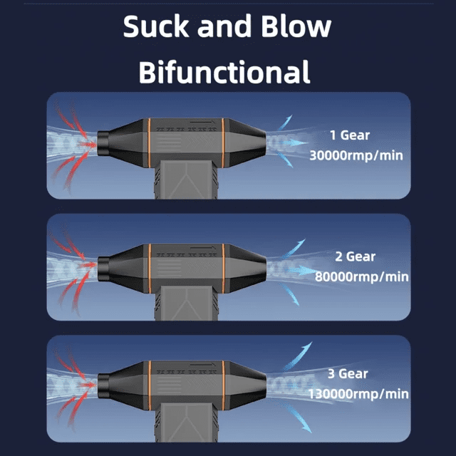 تنظیم سرعت: سه سطح سرعت (30,000، 80,000 و 130,000 دور در دقیقه) برای تنظیم جریان هوا متناسب با نیاز.