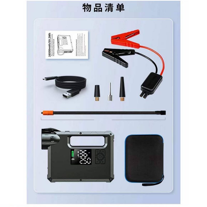 جامپ استارتر، پاوربانک، چراغ قوه، کمپرسور باد، نور اضطراری |