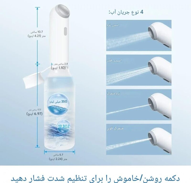 💧 چهار نوع پاشش: دوش ملایم، دوش قوی، پاشش متمرکز ملایم و قوی