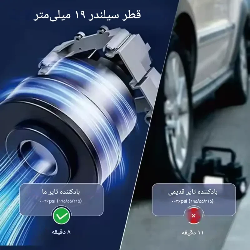 در مقایسه با مدلهای مشابه مانند Baseus CRDC01 یا Xiaomi Portable Pump 2، مدل TIERE INFLATOR CZK-5641C با قدرت 80 وات، حجم باددهی 35 لیتر بر دقیقه و نمایشگر LCD دقیقتر، عملکردی سریعتر و کاربردیتر ارائه میدهد. علاوه بر این، وجود پورت USB خروجی آن را به یک پاوربانک اضطراری چندمنظوره تبدیل کرده است.