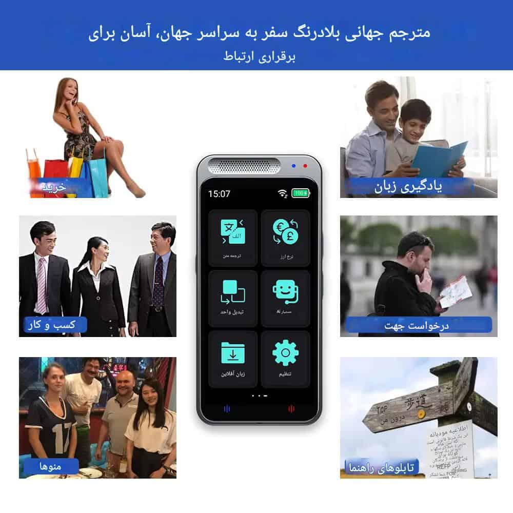 این دستگاه مترجم صوتی هوشمند، همراهی ایدهآل برای سفرها، جلسات تجاری، و یادگیری زبان است. با ویژگیهای کاربردی و کاربری آسان، Z6 به یک ابزار ضروری برای ارتباطات بینالمللی تبدیل شده است.