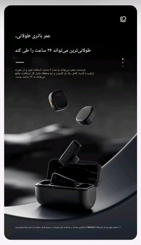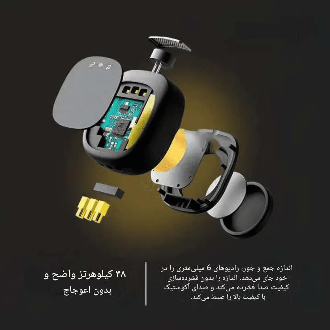 🔋 با باتری قدرتمند و دوام شارژ تا 20 ساعت، نگران قطع ضبط نخواهید بود. همچنین با برد مفید 50 متری، آزادی حرکت و کیفیت بینظیر را تجربه میکنید.