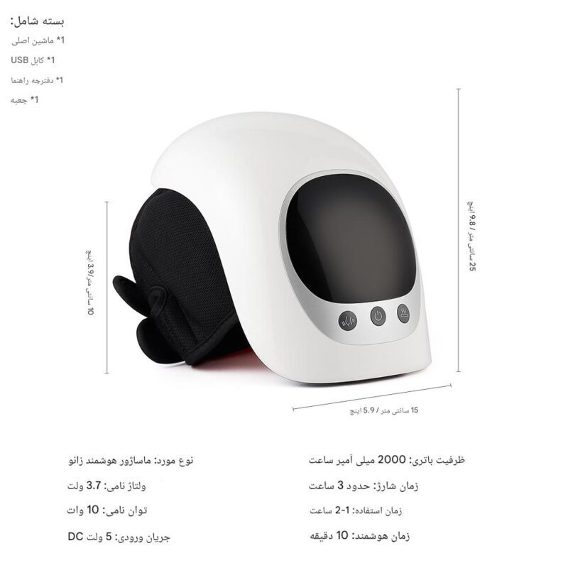 دستگاه ماساژ، کابل USB، دفترچه راهنما، جعبه |
