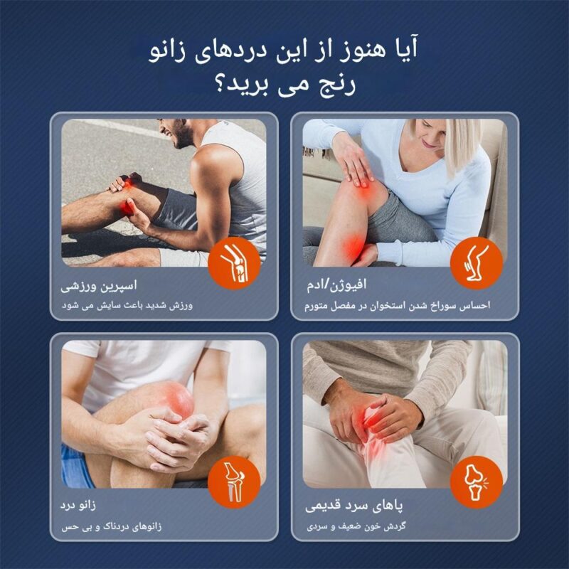 ✅ افرادی که دارای ایمپلنت فلزی یا پلاستیکی در زانو هستند، قبل از استفاده با پزشک مشورت کنند.